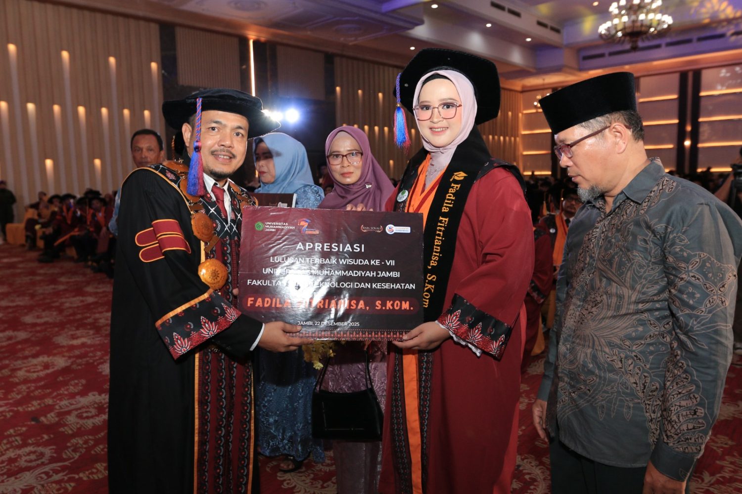 UM Jambi — Universitas Muhammadiyah Jambi (UM Jambi) kembali mencatatkan momentum penting dengan menggelar Wisuda ke-7 Program Sarjana dan Magister yang berlangsung khidmat di Abadi Convention Center, Senin 22 Desember 2025. Mengusung tema “Forging Future Leaders Through Innovation and Integrity”, wisuda kali ini menjadi simbol komitmen UM Jambi dalam mencetak pemimpin masa depan yang inovatif, berintegritas, dan berkarakter.